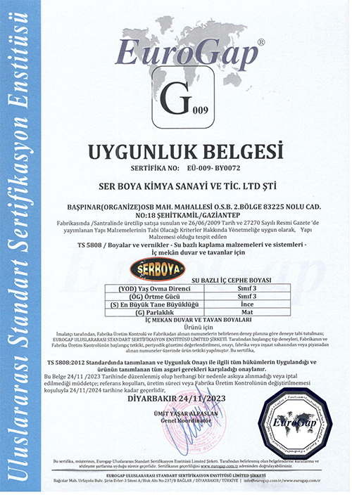 G BELGESİ SUBAZLI İÇ CEPHE VE TAVAN BOYALARI