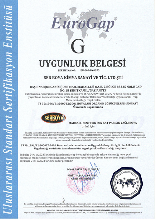 G BELGESİ SENTETİK SON KAT BOYALAR